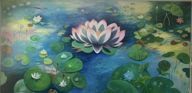 The South is full of light and floral beauty, it inspires and lulls me into day dreams. There is harmony in nature, even with the chaotic wildness and I find myself painting the feelings I get when out in my courtyard, meandering around to see what new buds have appeared over night. This piece exhibited in the Funding Future Artists exhibit recently and is now with a private collector.